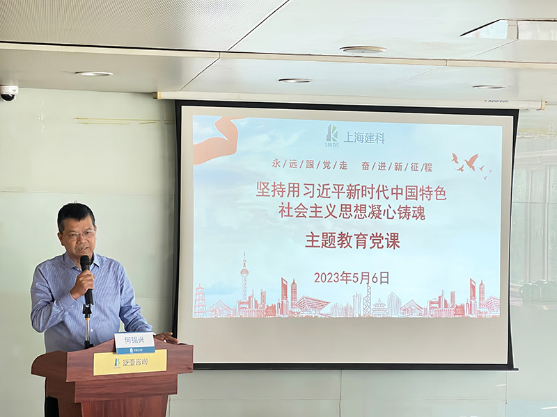 按照建科集團(tuán)黨委關(guān)于學(xué)習(xí)貫徹習(xí)近平新時(shí)代中國(guó)特色社會(huì)主義思想主題教育工作的統(tǒng)一部署,5月5日至6日,集團(tuán)黨委委員、副總裁、天津咨詢董事長(zhǎng)何錫興深入天津咨詢所屬泛亞公司開(kāi)展調(diào)研,并為全體黨員講題為《堅(jiān)持用習(xí)近平新時(shí)代中國(guó)特色社會(huì)主義思想凝心鑄魂》主題教育黨課。