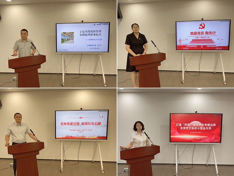 先進基層黨組織天津咨詢第二事業部(招標公司)黨支部書記于浩鵬、泛亞咨詢黨總支第二黨支部書記王然,優秀共產黨員代表第一事業部(宏亞公司)丁月、第三事業部(成套監理公司)艾興玉分別作典型交流發言。