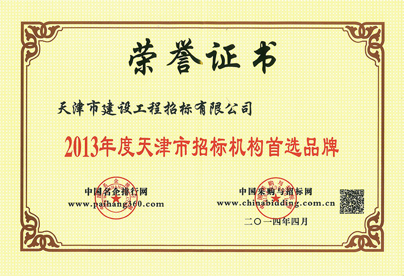 2013年度天津市招標機構首選品牌